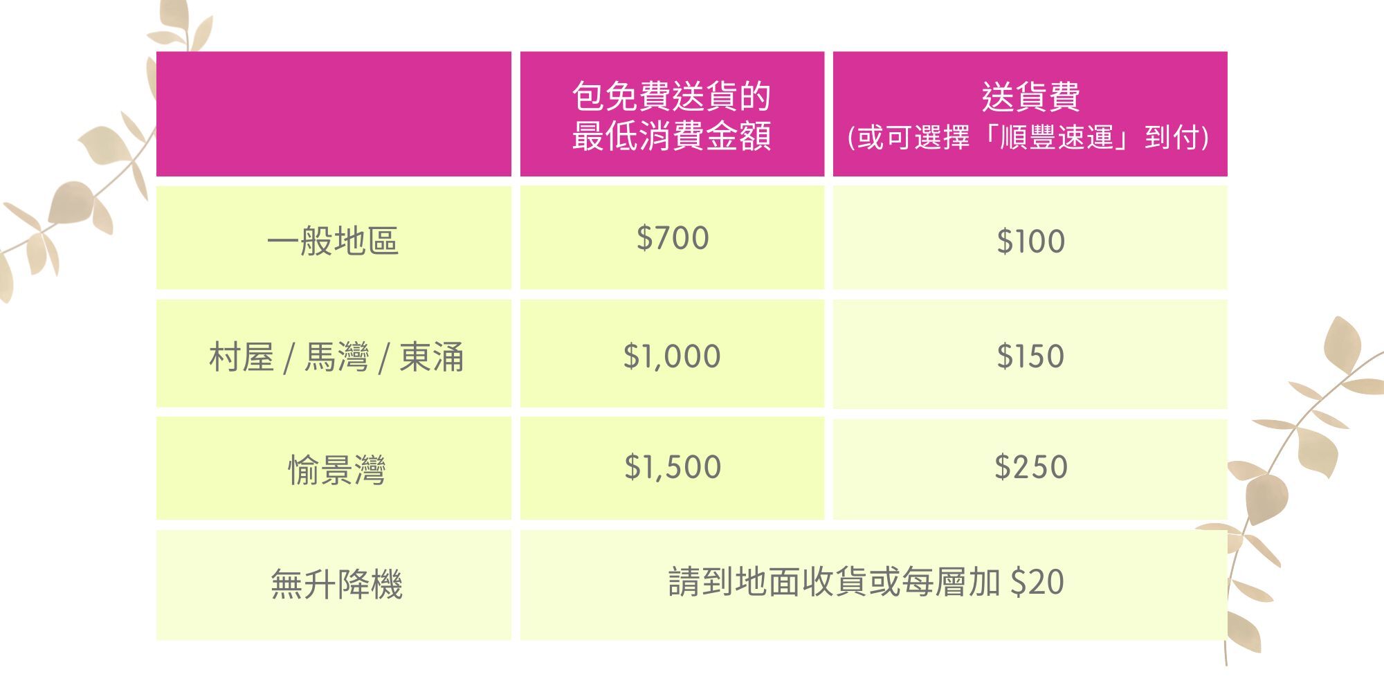 每單送貨收費: